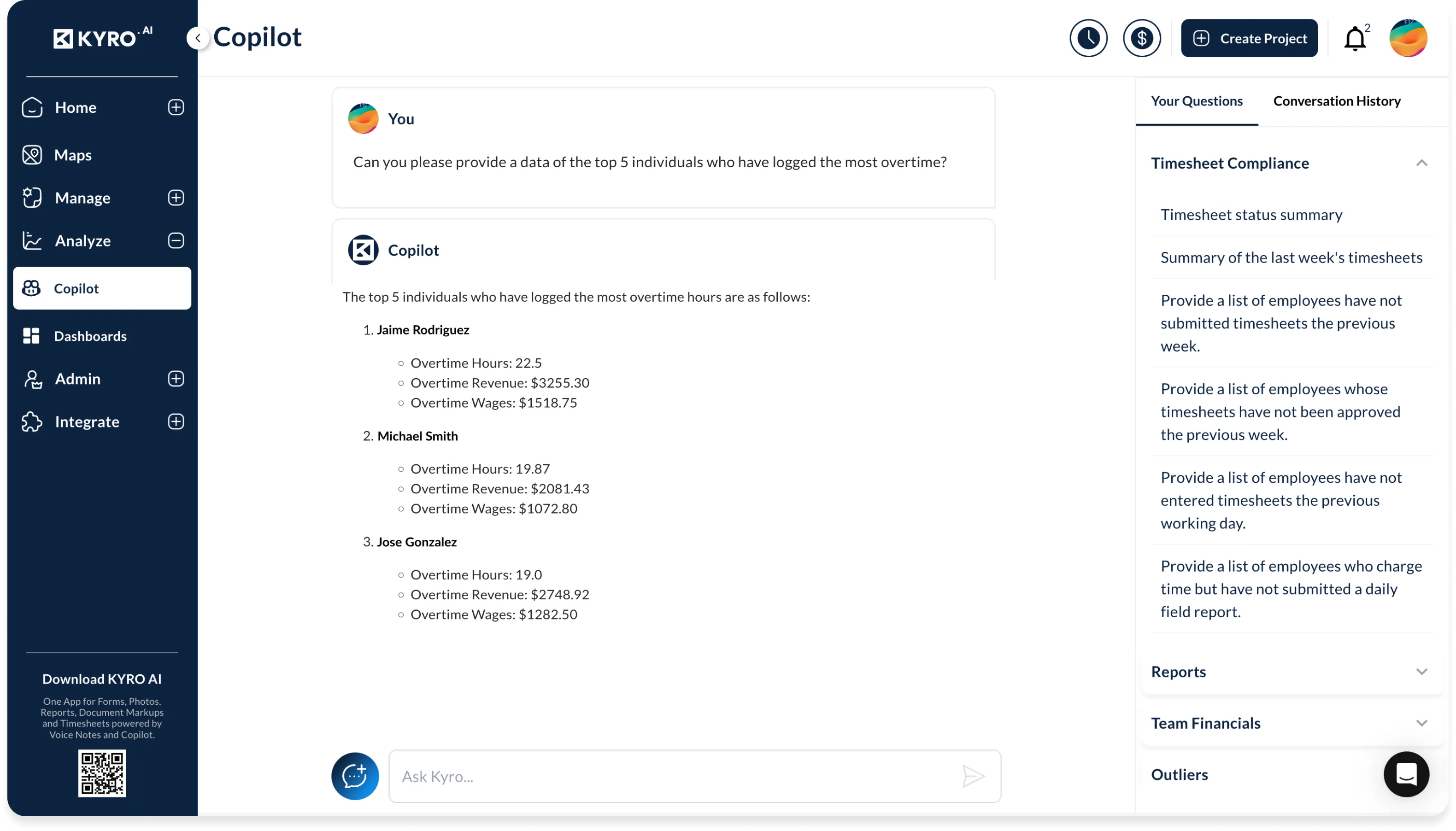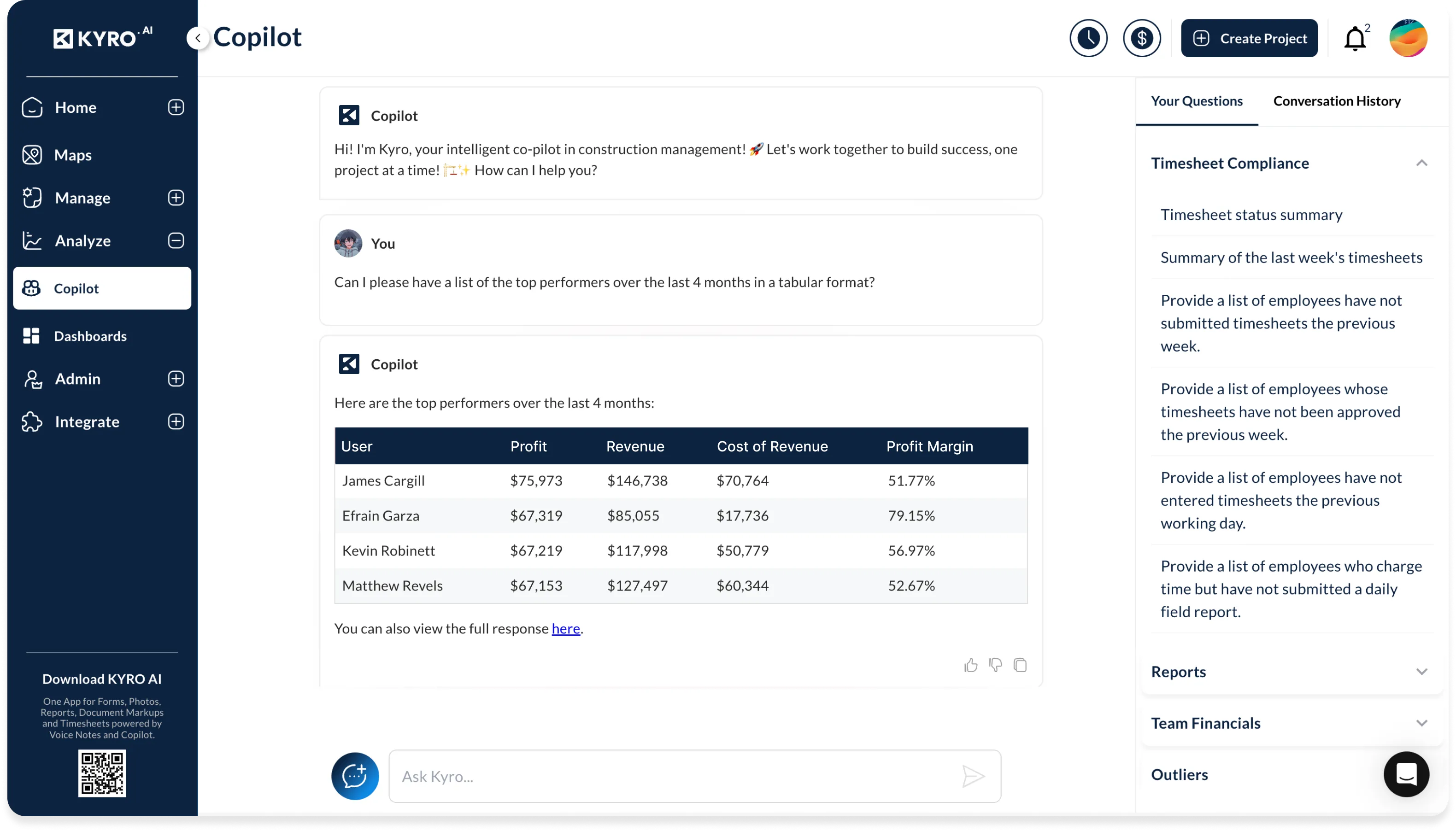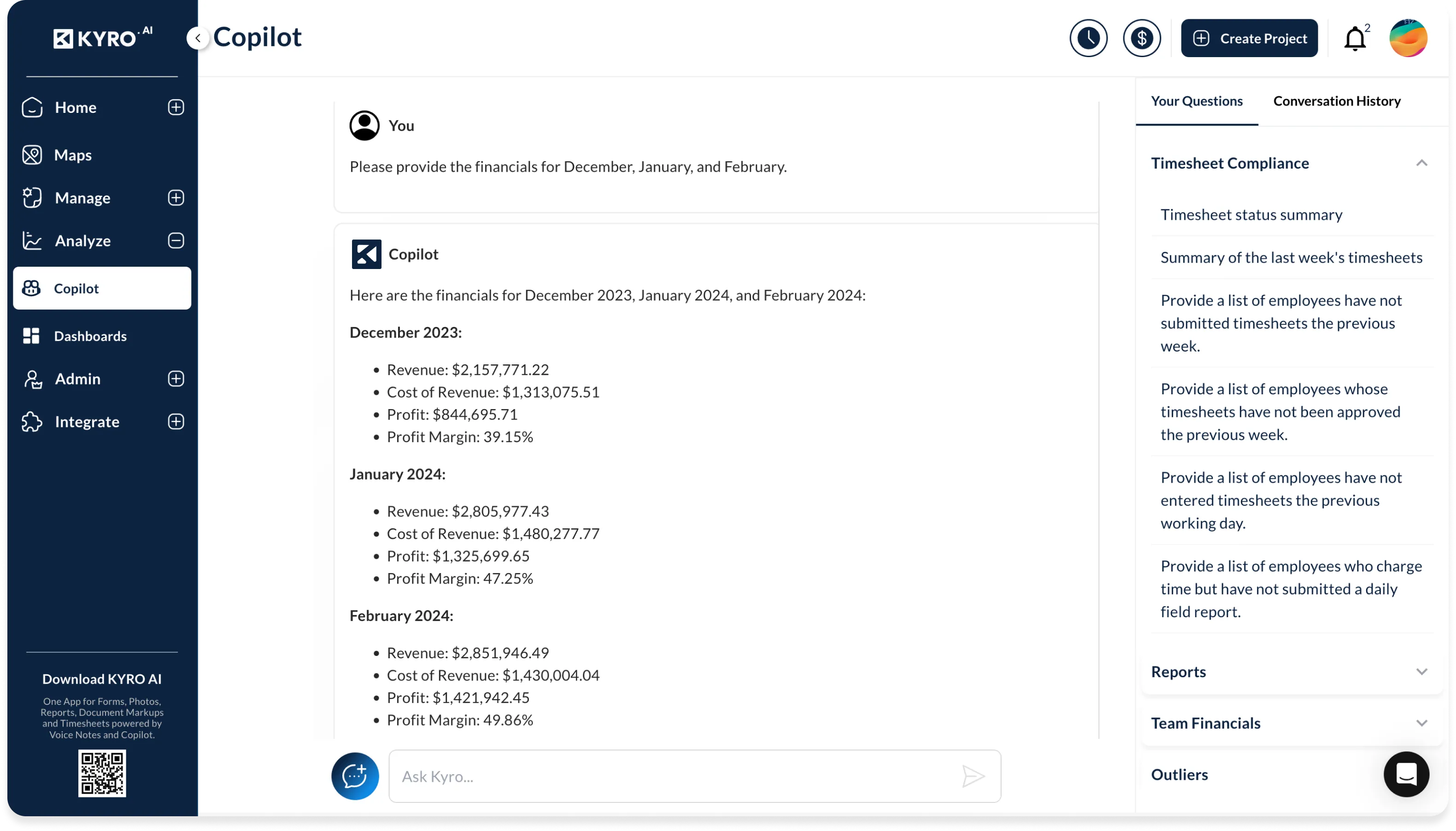 AI Copilot delivers insights into project costs, budgets, and profitability, empowering you to make informed decisions that maximize your bottom line and drive sustainable growth.