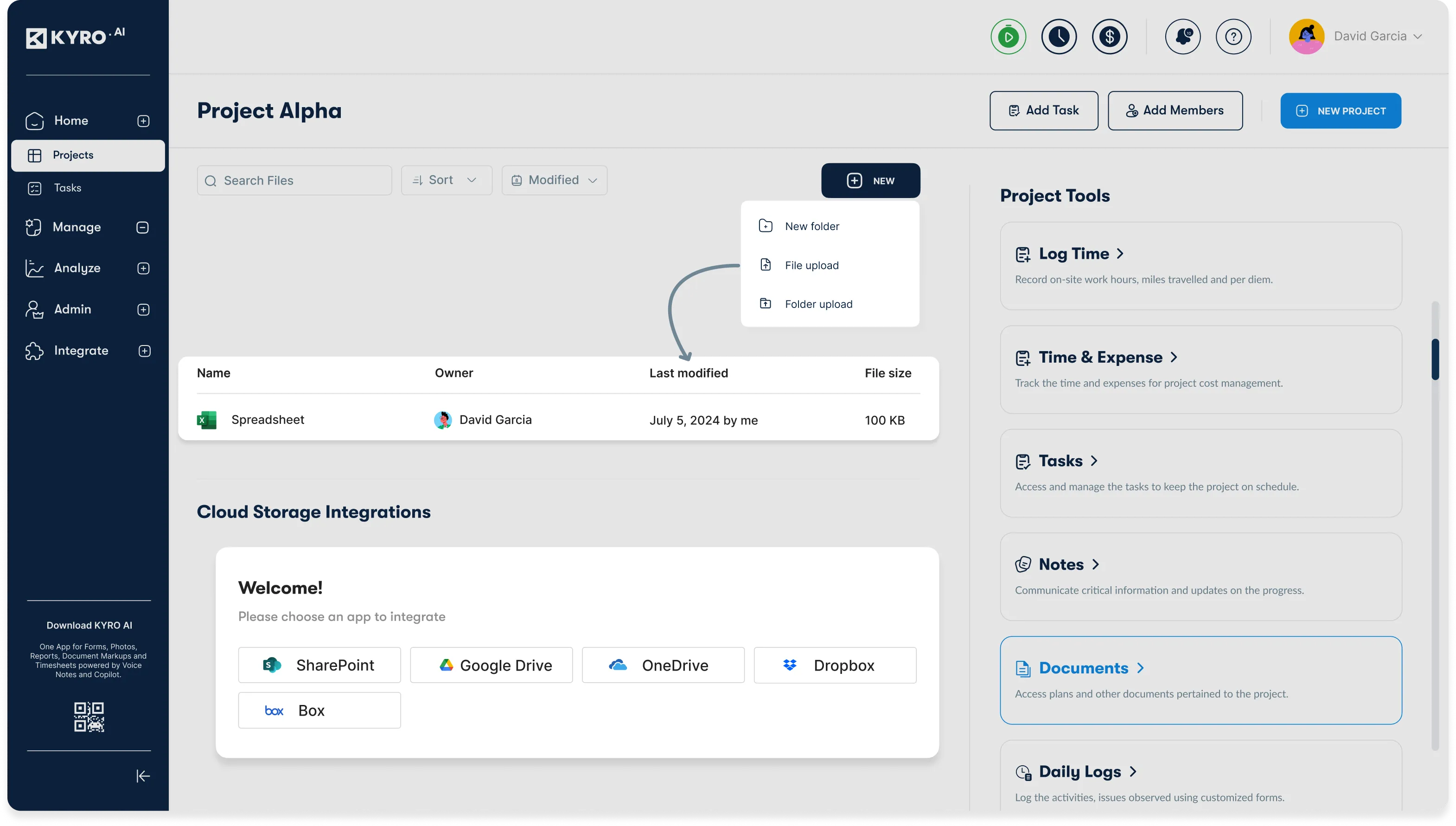 Store all project-related documents securely in one centralized location on KYRO. Never worry about losing files or searching through cluttered folders. Seamlessly import documents from other apps and keep everything organized.
